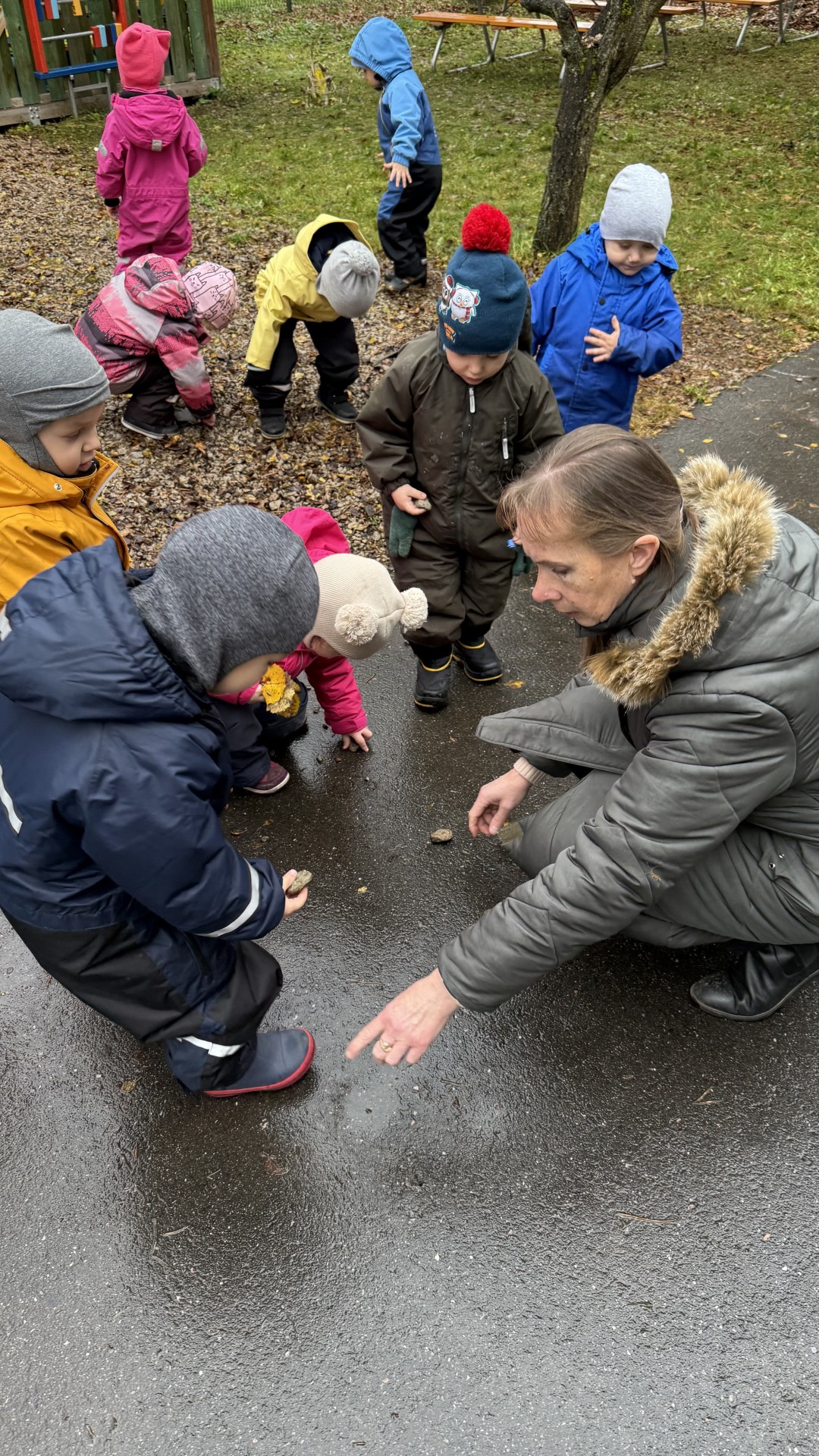 6. novembril tähistasime lastega õuesõppepäeva. Veetsime hommikupooliku värskes õhus, avastades sügisest loodust, liikudes, mängides ja õppides läbi kogemuste. Lapsed otsisid loodusest erinevaid värve ja kujundeid, uurisid linde ja taimi ning arutlesid, kuidas loodus muutub sügisel. Lisaks käisid osa lastest tiigi ääres, kus jälgiti veepeegeldusi, uuriti veetaimi ja kuulati, milliseid hääli loodus veekogu ümber teeb. Teised tegid samal ajal väikese matka