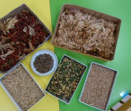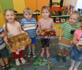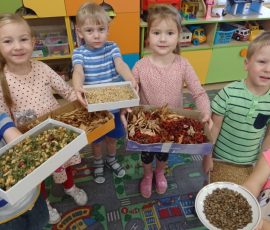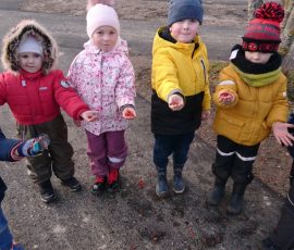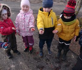Kirjutasime juba varem, et meie projekt “Meie looduse rikkus” sai toetuse KIKist (Keskkonnainvesteeringute Keskus) ning koos lastega käisime Iisaku Looduskeskuses, et meie maakonna puude rikkusega tutvuda. Pärast õppekäiku tegime lastega põhjaliku töö. Kuna Iisaku Looduskeskuse spetsialistilt saime teada, et looduses paljunevad puud seemnetest, siis otsustasime meie õueala puude seemneid koguda ja teha kaks asja korraga: toita linde ja kaasa aidata ka puude paljunemisel. Ühel sügisel päeval korjasime seemneid ja kasutasime neid linnutoidu tegemisel. Korjatud seemnetest, kaerahelbetest ja rasvast tegime palle, mida kasutasime pärast linde toitmisel.